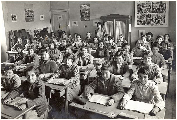École de filles : une salle de classe à la fin des années 1950.