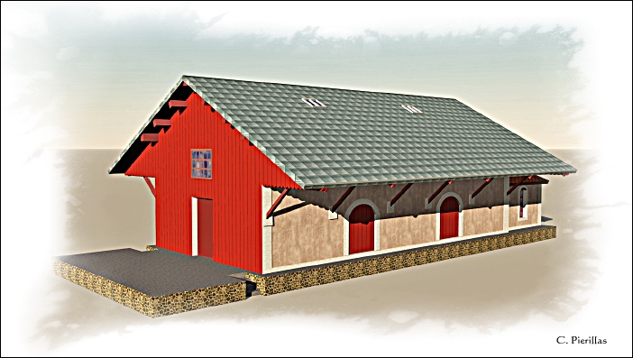 Cet essai de reconstitution en 3D de la gare de Rochechouart, dans les années 1950, nest pas destiné aux puristes. Il tente modestement de restituer lambiance de la gare lors des dernières années de son activité. |