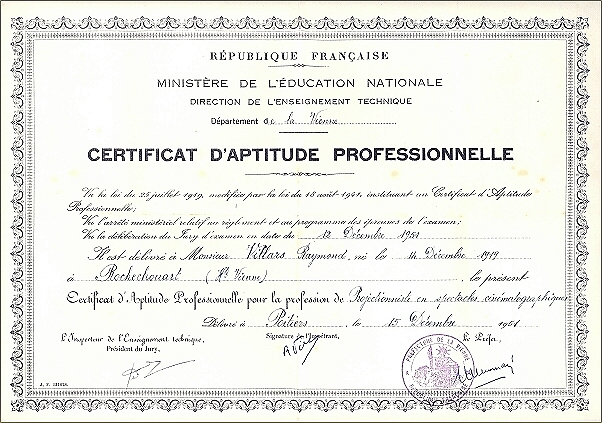 Mon père a dû passer un examen et obtenir son CAP de projectionniste : cétait obligatoire.