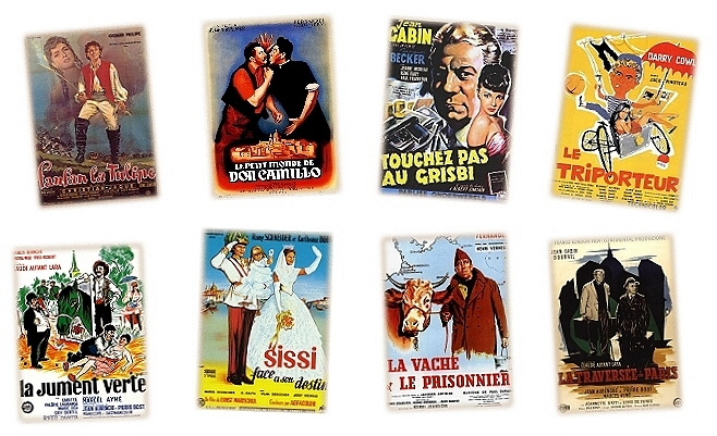 La télévision nexistant pas dans les foyers, le cinéma avait beaucoup dadeptes. Mes parents choisissaient les films que le public aimait comme la série des Don Camillo, les films avec Bourvil ou Fernandel, les films policiers avec Jean Gabin, les films dopérette avec Luis Mariano (La Belle de Cadix, Violettes Impériales), les Tarzan, la série des Sissi, les mélodrames italiens doù les spectateurs sortaient en pleurant....
