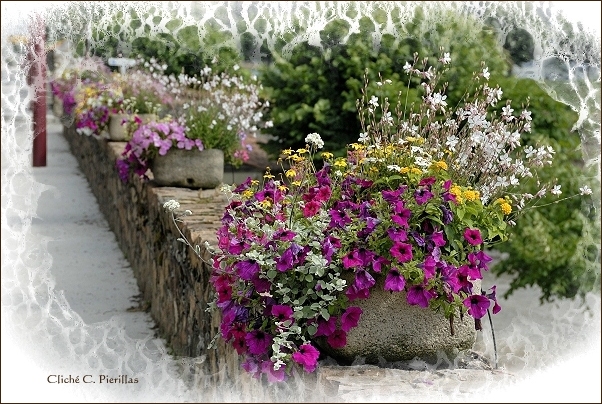 La commune, pour sa part, fit lacquisition et la mise en place des premières jardinières en pierre reconstituée fleuries sur le mur de la place Pontville, sur le mur de la rue des fossés devant Le Capitole ainsi que devant la mairie.