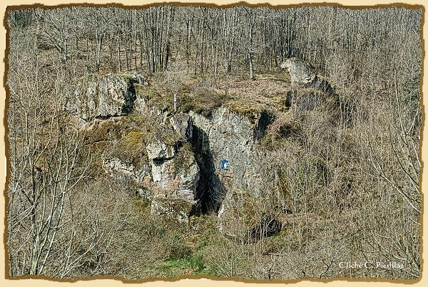 Appelé roc du boeuf à cause de sa forme qui fait penser à un boeuf couché, ce rocher, placé lui-même sur un bloc rocheux énorme, était autrefois, une pierre dansante. Placée en équilibre sur un de ses côtés qui formait pivot, elle dansait selon la légende, au son de la cloche de la chapelle du château aujourdhui disparue. Un jour dénorme tempête, le clocher qui menaçait ruine, sécroula, et la cloche roula dans le vide au pied du château. |
