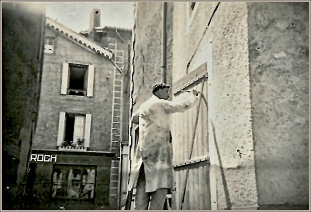 Maurice Sorton en plein travail de peinture dans la ruelle qui jouxtait à lépoque le magasin Blin. |
