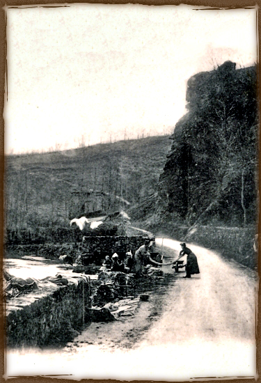 Au début du 20ème siècle, lavandières essorant du linge au pied de la Roche-choir.