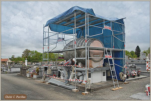 Un beau matin de septembre 1930, les Rochechouartais virent sélever dans leur cimetière de Beaumoussou, un échafaudage aux bizarres entretoises. Des ouvriers coulaient, en ciment, une boule de forme inattendue.