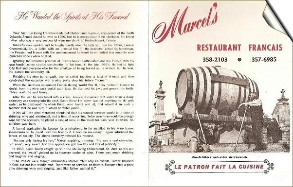 Aujourdhui, Chabernaud a 68 ans. Quand on lui parle de son tonneau, il répond en se tapant sur les cuisses : Il ma coûté 17000 francs. À lépoque, cétait un prix. Il est vrai quil est vaste et peut contenir quatorze places. Jai bien choisi son emplacement car, en bas du cimetière, cest trop marécageux et, comme chacun sait, je déteste leau. Aussi ai-je fait sceller dans mon caveau, plusieurs caisses de bonnes bouteilles. On les boira le jour de mes obsèques. Je ne voudrais pas quon dise : Il était triste, lenterrement de Léonce...