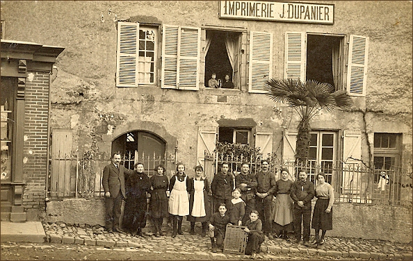 Justin Dupanier, son épouse et ses employés, devant limprimerie en 1922.