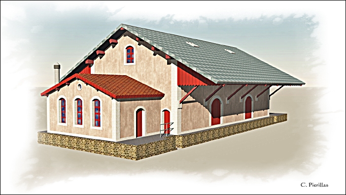 Cet essai de reconstitution en 3D de la gare de Rochechouart, dans les années 1950, nest pas destiné aux puristes. Il tente modestement de restituer lambiance de la gare lors des dernières années de son activité. |