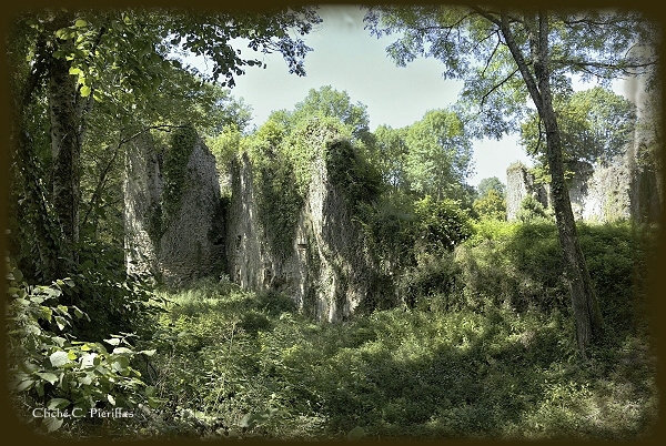 Entourées de fossés larges et profonds, les ruines imposantes du château de Lavauguyon, envahies par la végétation, se dressent encore fièrement, dominant les rives encaissées de la Tardoire.