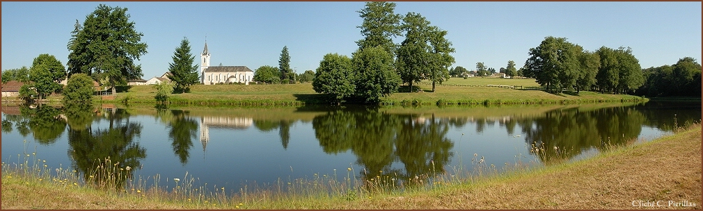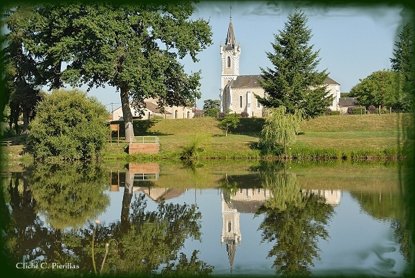 La petite ville de Gorre faisait partie autrefois de la vicomté de Rochechouart. Elle possédait une église datant du 11ème siècle qui jouxtait les bâtiments du château. Cette église a été détruite à la fin du 19ème siècle et remplacée en 1892 par léglise actuelle, dont limage se reflète avec le plus bel effet à la surface du plan deau communal. |