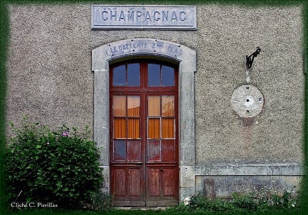 La pendule de la station de Champagnac, qui indiquait lheure exacte pour les voyageurs, et qui se trouvait sur la façade, tout près des portes de sortie des salles dattente, nest plus là, comme si le temps sétait arrêté. |