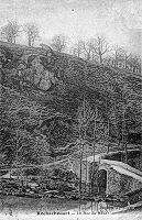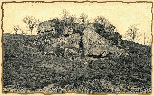 Appelé roc du boeuf à cause de sa forme qui fait penser à un boeuf couché, ce rocher, placé lui-même sur un bloc rocheux énorme, était autrefois, une pierre dansante. Placée en équilibre sur un de ses côtés qui formait pivot, elle dansait selon la légende, au son de la cloche de la chapelle du château aujourdhui disparue. Un jour dénorme tempête, le clocher qui menaçait ruine, sécroula, et la cloche roula dans le vide au pied du château. |