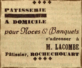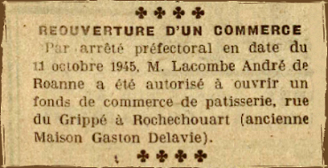 À la fin de lannée 1945, André Lacombe installe une pâtisserie à Rochechouart. |