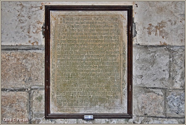 Le révérend père en Christ illustrissime seigneur Simon de Cramaud, natif dun lieu de cette paroisse, a fondé en cette église, quatre chapellenies pour quatre chapelains, dont chacun est tenu de célébrer chaque jour, à perpétuité, une messe de morts pour les âmes du père du dit révérend seigneur et de ses parents, et ce chacun leur tour et par semaine, savoir, les quatre semaines étant révolues, celui qui aura célébré dans la première semaine du mois, devra recommencer, et dans la seconde le second, dans la troisième le troisième, et dans la quatrième le quatrième, et continuant ainsi chaque mois, à perpétuité.