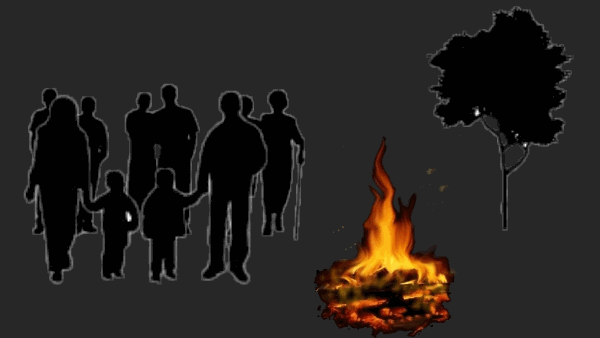Durant la journée, des fagots de bois étaient empilés à lun de ces emplacements, et, à la tombée de la nuit, les habitants se réunissaient sur la place.