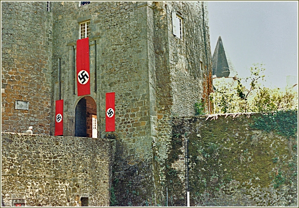 Tournage du film Souvenir de langlais Geoffrey Reeve : entrée du château (1987).