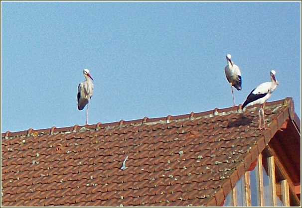 Cigognes posées sur le toit de la médiathèque (août 2007).