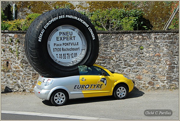 Une voiture de la caravane du tour de France (qui traversait cette année notre région) égarée à Rochechouart ?
